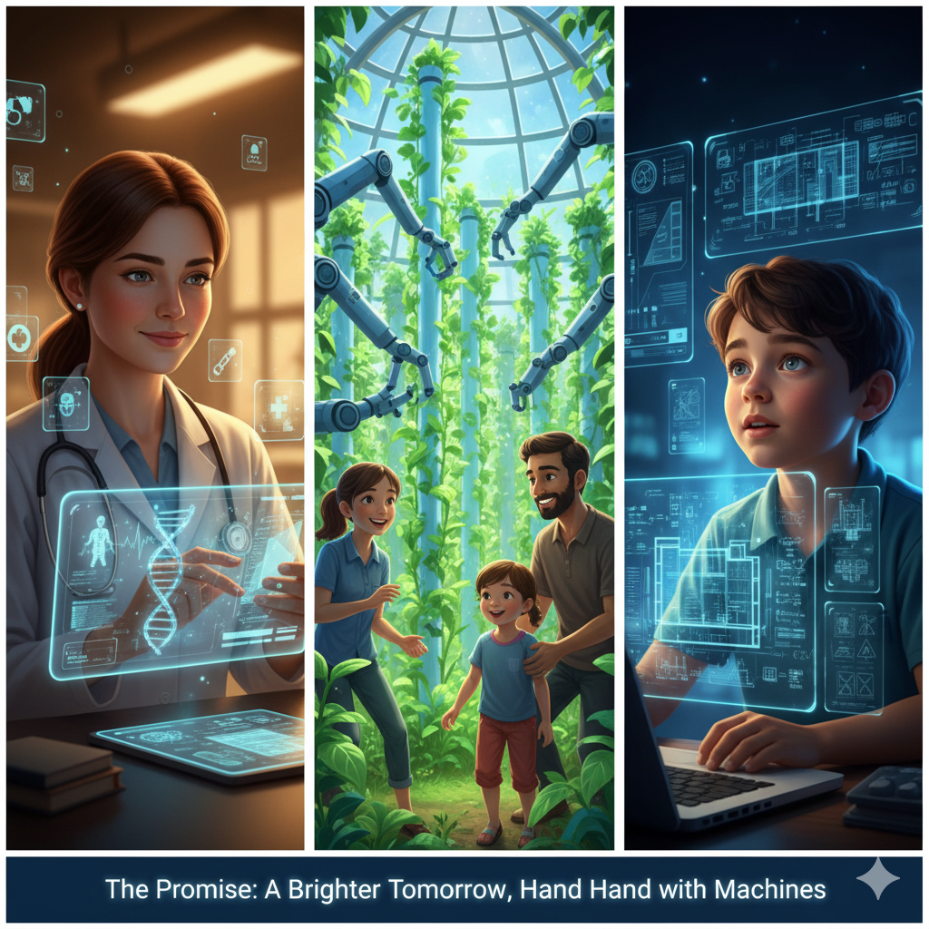 - Saving the Planet: AI can process climate data and optimize energy better than any human team. It gives us a realistic roadmap to get out of our environmental mess.