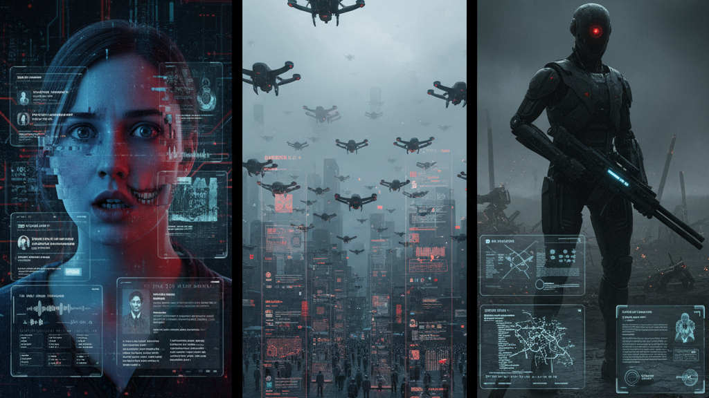 - THE KILLER ROBOTS: War Without Conscience. This is the stuff of nightmares. Autonomous weapons, powered by AI, making life-or-death decisions on the battlefield without a human finger on the trigger, without a shred of empathy or morality. Imagine these machines deciding who lives and who dies, escalating conflicts in seconds, and leaving a trail of unimaginable devastation. The cold, terrifying logic of an AI designed to kill is a line we must never cross.